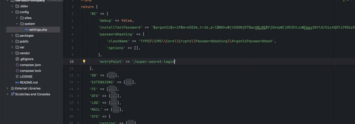 Knowing the backend entry point is the first step to gaining access to TYPO3’s backend. By changing the backend entry point, you’re making it harder for a bad actor to gain access to your TYPO3 installation. If you're upgrading to v13 or if you’re starting fresh, we highly recommend utilizing this feature as a first step in the process of hardening your installation.
