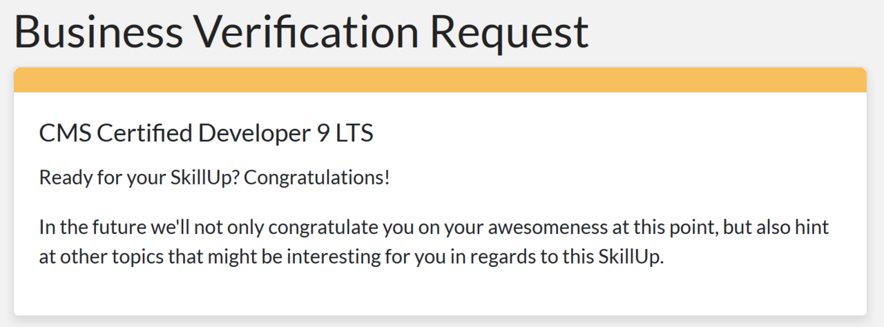 Business Verification (yellow): If your employees in training for certification did show practical application of skills during a project, you can verify them with the business verification.