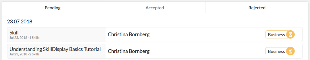 Self Verification (green): Let employees self-verify their skills to help them getting an overview of their own progress.