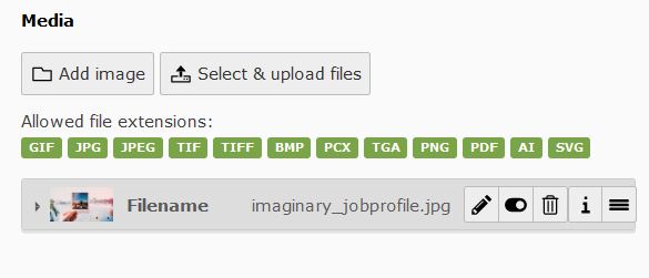 On the SkillDisplay platform or a SkillDisplay as a Service instance, a new record “SkillSet” needs to be created. Afterwards skills can be selected, links to your own website can be set, and a job description as well as an image (1600x900) can be added.