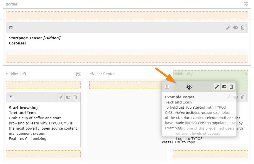 TYPO3 gives marketers flexible control when they make new content. It’s easy to add new pages in TYPO3 and assemble page layouts from content elements like images, text, block quotes, and references to other content. You can drag and drop to rearrange how they appear.