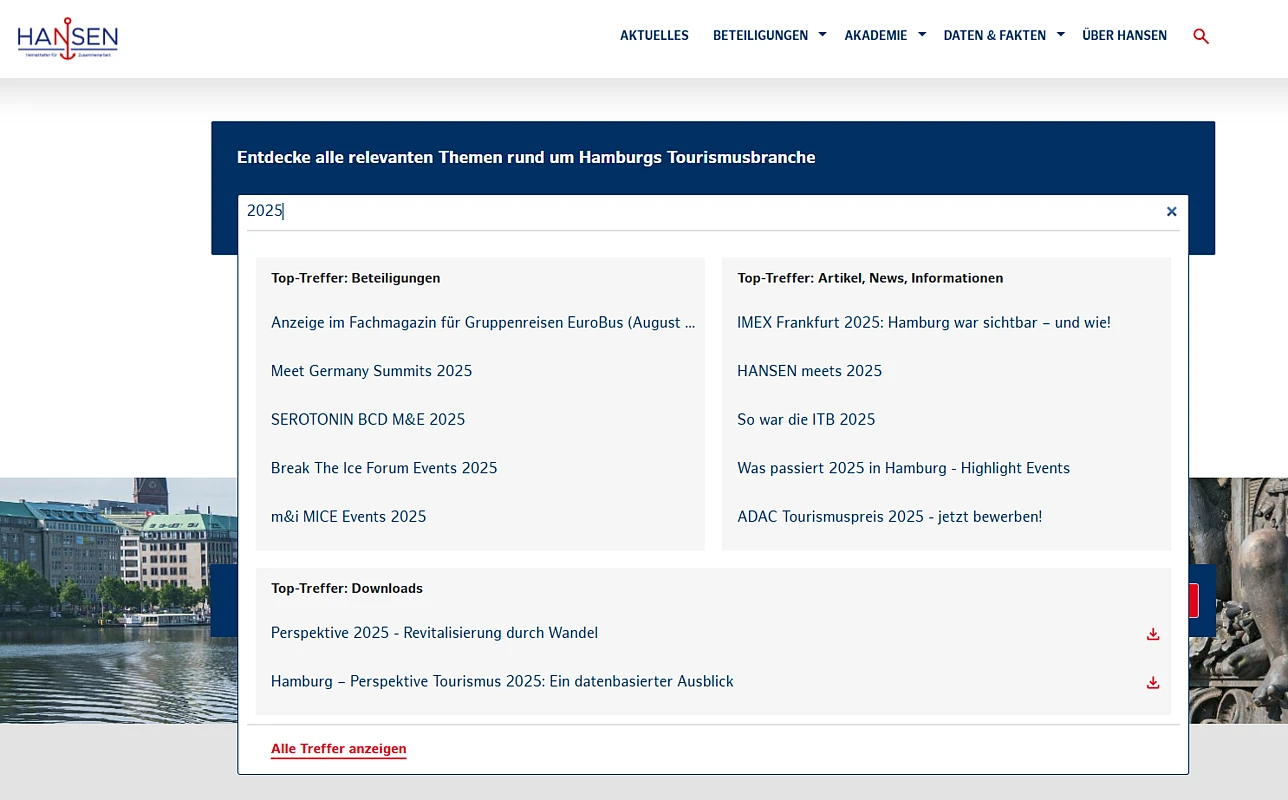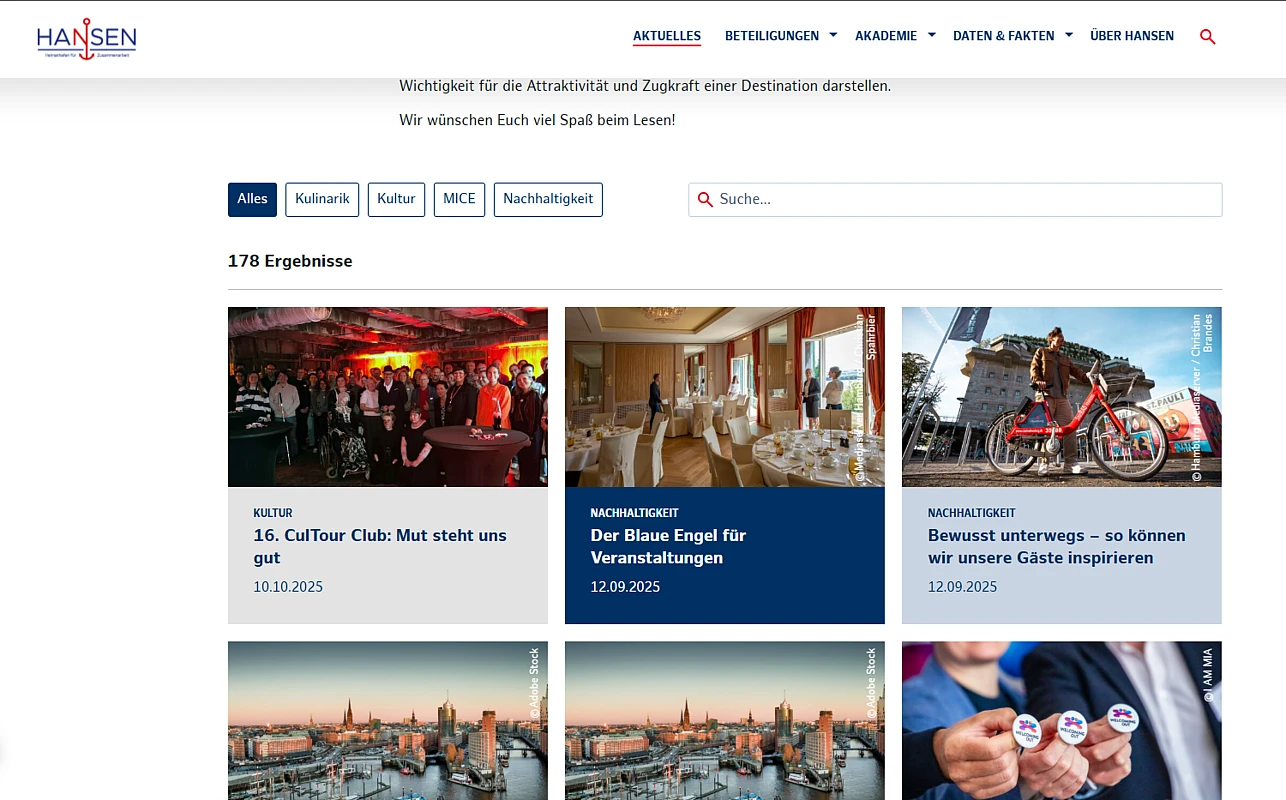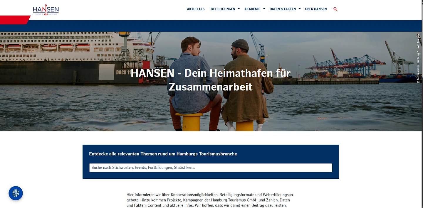 HANSEN is the central platform for all tourism service providers, B2B partners and tourism professionals in Hamburg. Operated by Hamburg Tourismus GmbH (HHT), the portal provides information on cooperation opportunities, participation formats, training programs, projects, and campaigns related to Hamburg’s tourism industry.