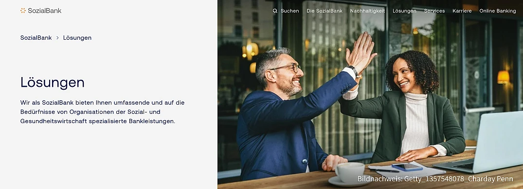 “With the relaunch of its website, SozialBank set itself the goal of remaining successfully visible in the future without deviating from its core values. For our customers, the visual appearance was meant to evolve digitally, while the trusted service remained unchanged. The result is a modern and appealing corporate website that offers users intuitive navigation and clear access to the bank’s products. At the same time, the high standard of customer service that distinguishes SozialBank has been maintained.”