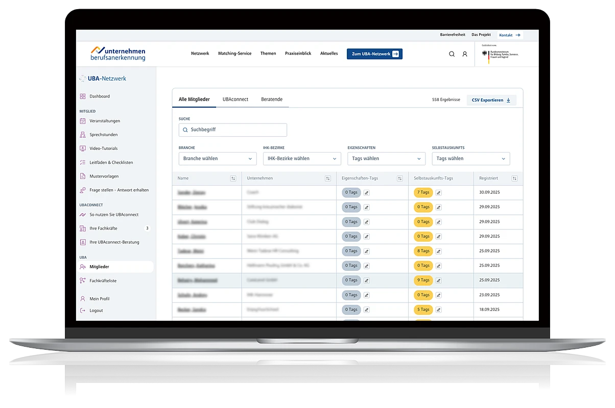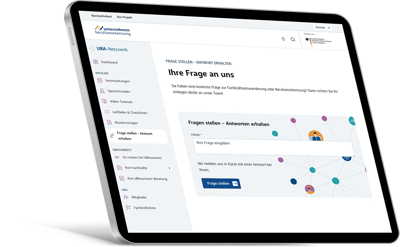 Unternehmen Berufsanerkennung (UBA) is an initiative supported by the DIHK Service GmbH and funded by the Federal Ministry for Family Affairs, Senior Citizens, Women and Youth (BMFSFJ) in Germany.
