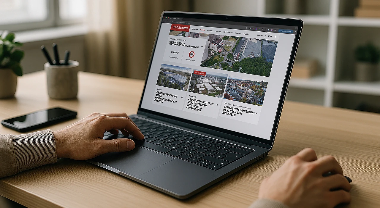 The comprehensive relaunch redesigned and rebuilt the UG Hagedorn website into a modern, high-performance digital platform presenting the group of companies and its service areas. A new, expandable information architecture was introduced to support editorial independence while clearly structuring complex business content for external audiences. Through stakeholder engagement, business objectives and departmental requirements were translated into modular content components that enhance presentation quality and make better use of existing marketing assets.