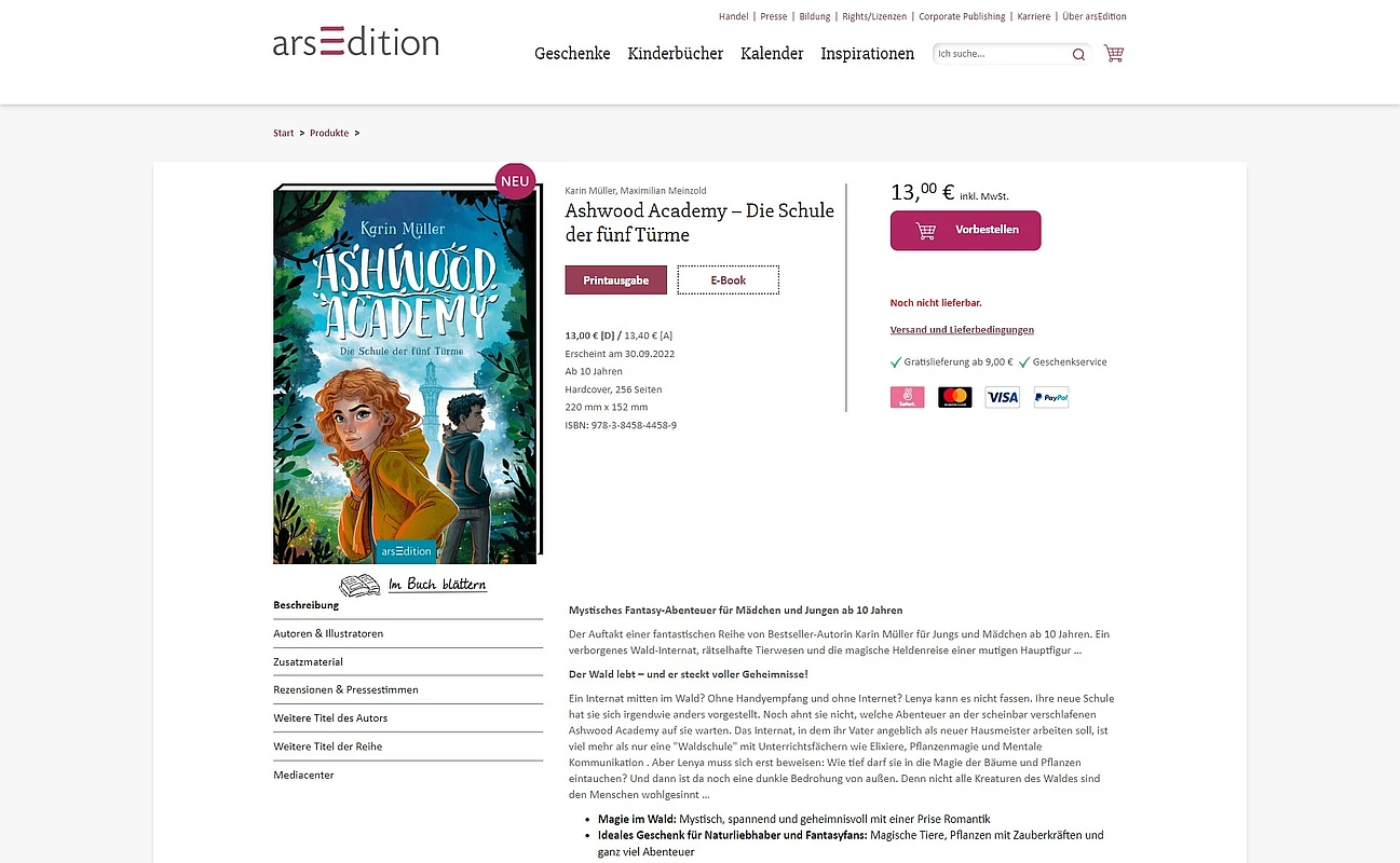 I'm interestedGerman publishing company arsEdition, is an industry leader in the publishing of children's books, calendars, and stationary. The company, founded in 1896 has been part of the Swedish Bonnier Group since 2000, one of the largest media companies in the world.