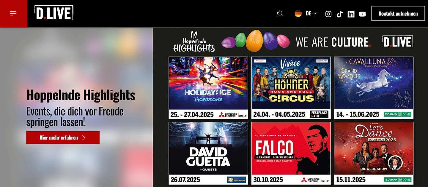 D.LIVE is a major live entertainment and event operator based in Dusseldorf, Germany. The company is a subsidiary of the City of Dusseldorf and manages a range of entertainment venues, including locations for concerts, trade fairs, and other large-scale events.