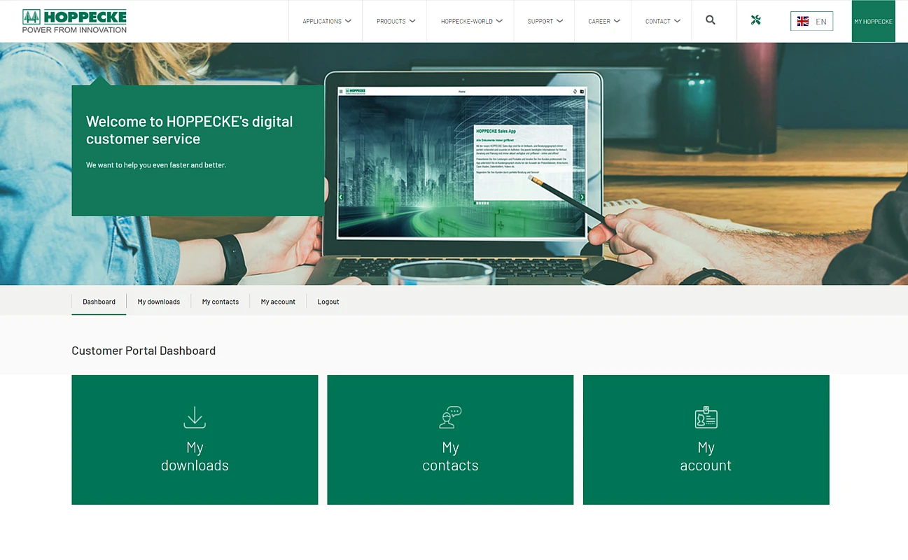 The first step in the process was the integration of HOPPECKE’s customer portal into their existing system infrastructure. For this, 3m5. identified the following key systems for implementation: