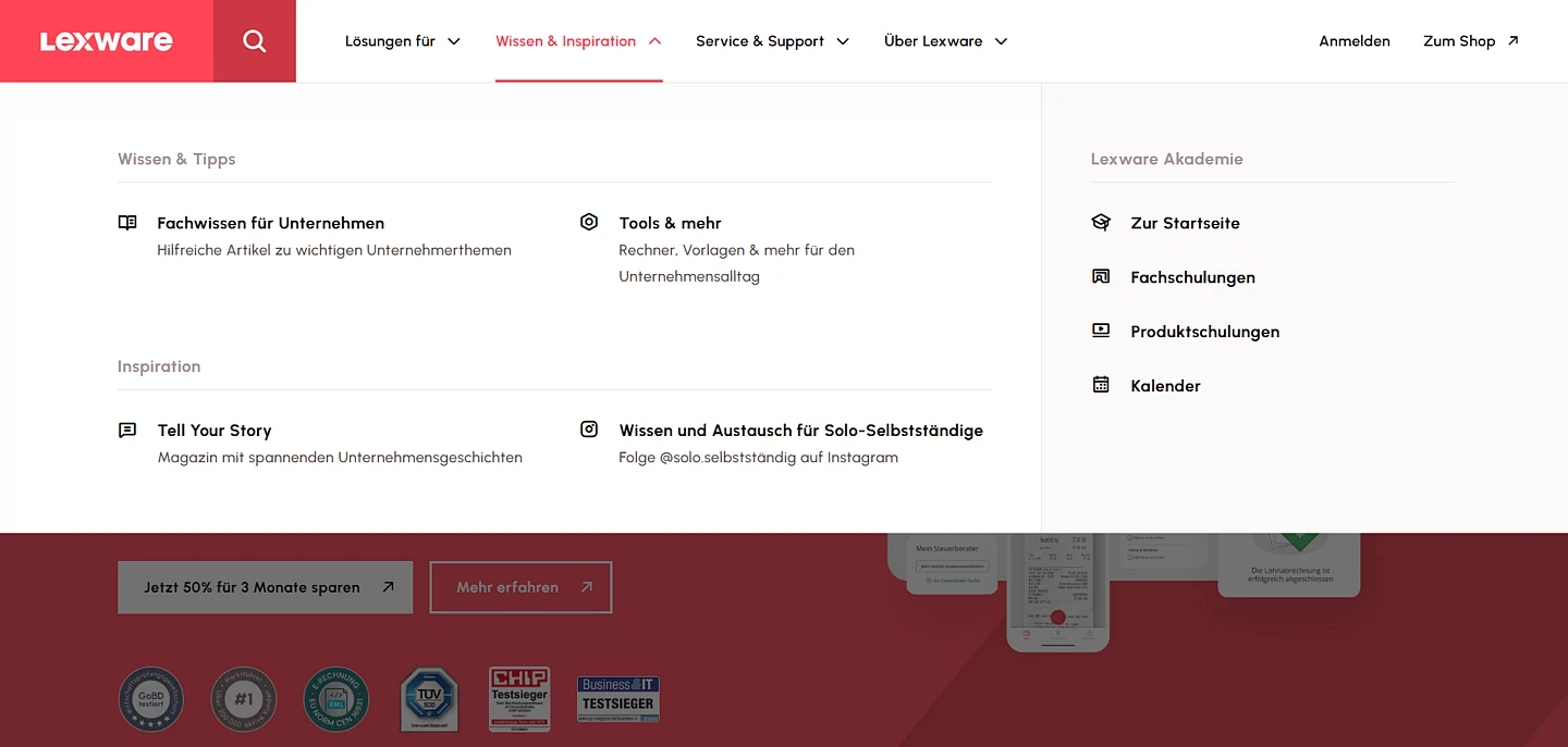 The project focused on the relaunch and continuous development of Lexware’s website, emphasizing usability and scalability. The majority of the work centered around marketing the software products listed directly in the integrated shop, ensuring easy access to knowledge articles and support resources.