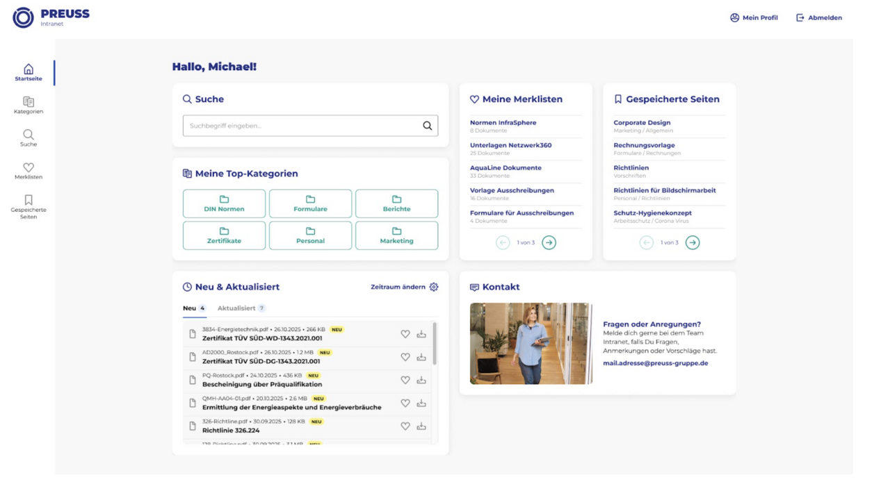 PREUSS Service GmbH sought an agency who could help update their intranet in order to streamline internal communication and document management. They sought a user-friendly, modern solution with seamless DocuWare integration. wendweb GmbH was selected for this project based on their proven expertise with TYPO3 CMS and their strong portfolio of successful implementations.