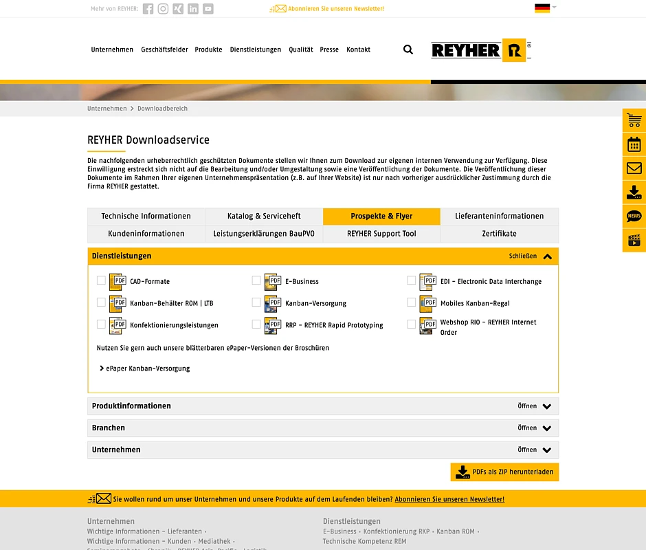 The collaboration began with the development and launch of a SAP-integrated B2B online shop. Since then, the partnership has evolved through numerous projects and enhancements including continuous maintenance and expanded content sections. A key milestone in their partnership took place in 2010 when atlantis dx took over full maintenance of REYHER’s TYPO3 website.
