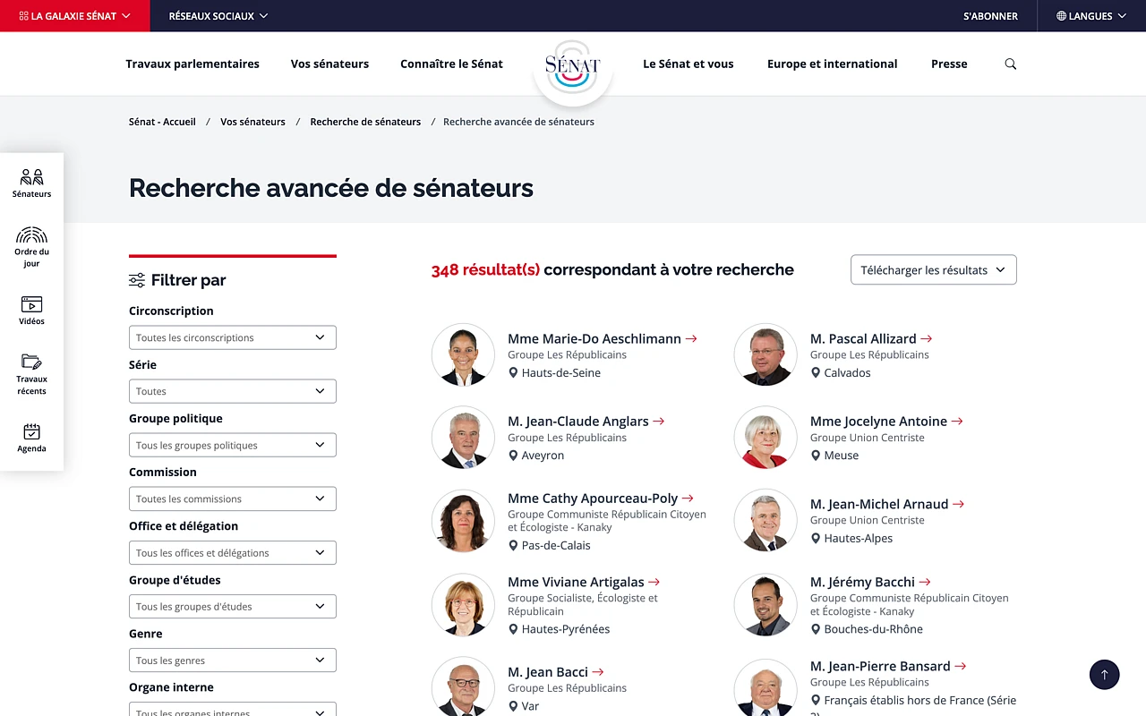 GAYA also introduced a module for importing senator diary data via ICS feeds and developed a comprehensive senator directory with sophisticated multi-criteria search capabilities. Furthermore, GAYA ensured compliance with web accessibility standards, making the website accessible and user-friendly for all visitors. The site is GDPR compliant and achieves a 79% compliance rate with the RGAA (French equivalent of WCAG).