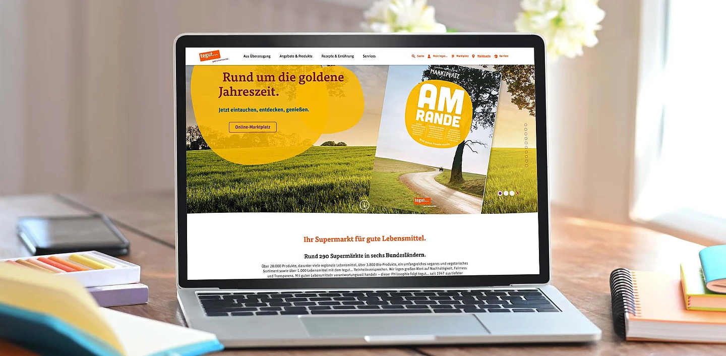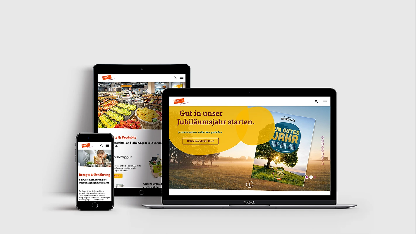With the launch of the redesigned tegut.com, DMK delivered a contemporary website matching the supermarket chain’s brand aesthetic with: