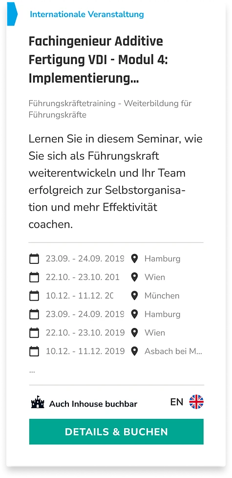 A key project goal was creating an adaptable site architecture to handle ongoing expansions to VDI WF's multilingual seminar catalog. BRANDUNG employed a modular design pattern to provide this flexibility. As new course categories emerge, additional content modules can slot in without the need to rebuild other areas. TYPO3’s out-of-the-box internationalization features mean that VDI WF can swiftly launch dedicated country sites when they have translated course content. BRANDUNG built custom indexing and faceted search with Solr for VDI WF, helping users find relevant seminars among the extensive learning options.