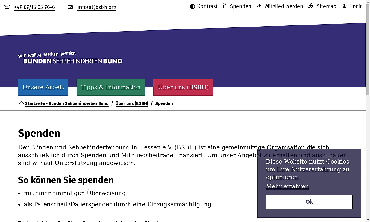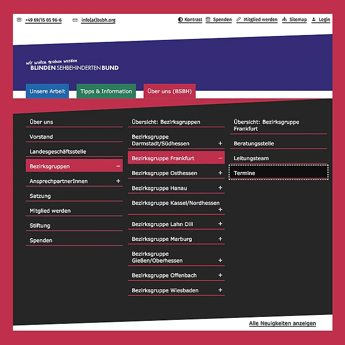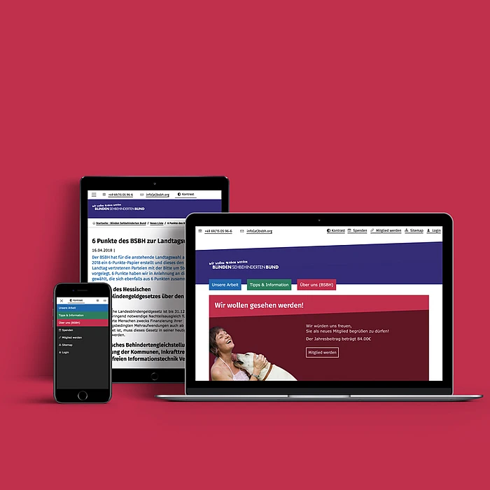 Die Selbsthilfeorganisation der Blinden und Sehbehinderten in Hessen - kurz BSBH - beauftragte dkd mit dem Projekt des Relaunches ihrer Website, bei dem die Barrierefreiheit klar im Vordergrund stand. Dabei gab es grundlegende Richtlinien zu beachten:
