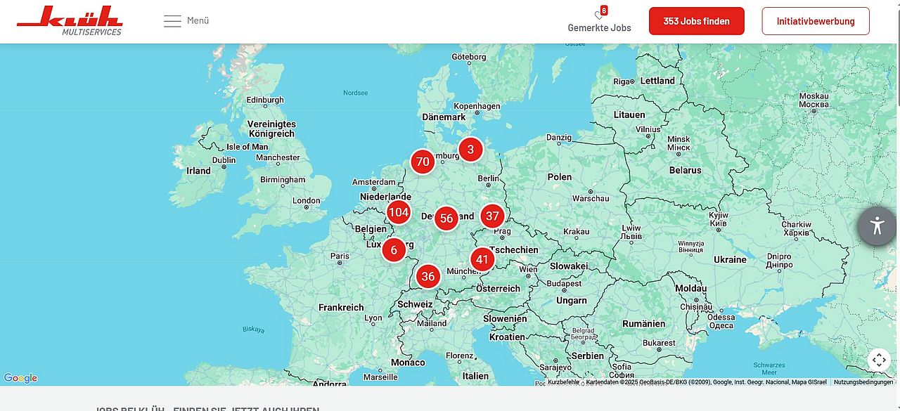 - Interaktive und benutzerfreundliche Funktionen, darunter eine auf Google Maps basierende Jobkarte für geografische Stellensuchen.