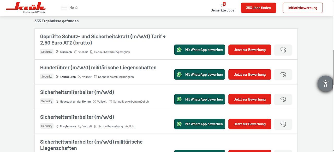 - WhatsApp-Bewerbungen über PitchYou: Durch die Integration von PitchYou können sich Interessierte direkt per WhatsApp bewerben. Diese Option senkt die Einstiegshürde und spricht insbesondere jüngere Zielgruppen an – ein wichtiger Faktor für Klüh bei der Gewinnung neuer Talente.