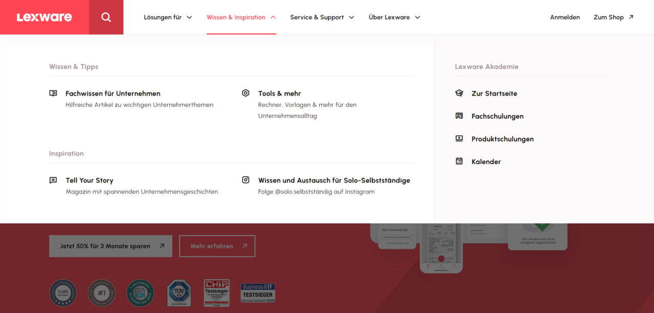 Das Projekt konzentrierte sich auf den Relaunch und die kontinuierliche Weiterentwicklung der Lexware-Website mit Schwerpunkt auf Benutzerfreundlichkeit und Skalierbarkeit. Der Großteil der Arbeit konzentrierte sich auf die Vermarktung der Softwareprodukte, die direkt im integrierten Shop gelistet sind, sowie auf die Sicherstellung eines einfachen Zugangs zu Wissensartikeln und Supportressourcen.