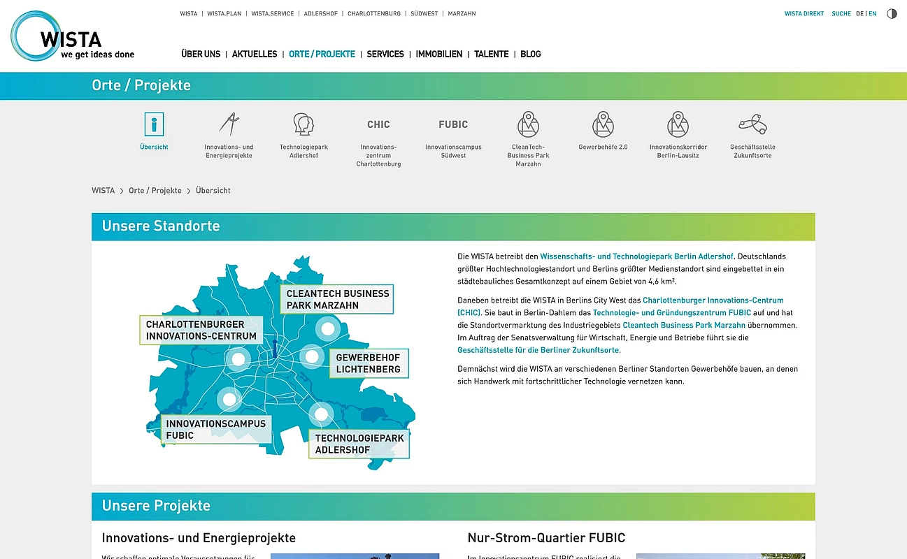 Das Unternehmen unterhält mehrere digitale Domains für die einzelnen Geschäftsbereiche sowie für seine Standorte und Projekte in Berlin. Im Jahr 2021 wollte WISTA seine Website, die auf einer älteren TYPO3 LTS-Version lief, technisch aktualisieren, um die Sicherheit des Systems zu gewährleisten.