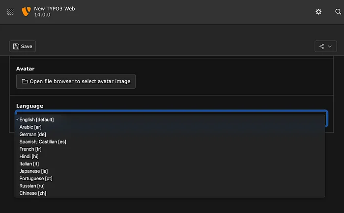 - Community contributions → translations of the TYPO3 backend into languages like Arabic or Czech