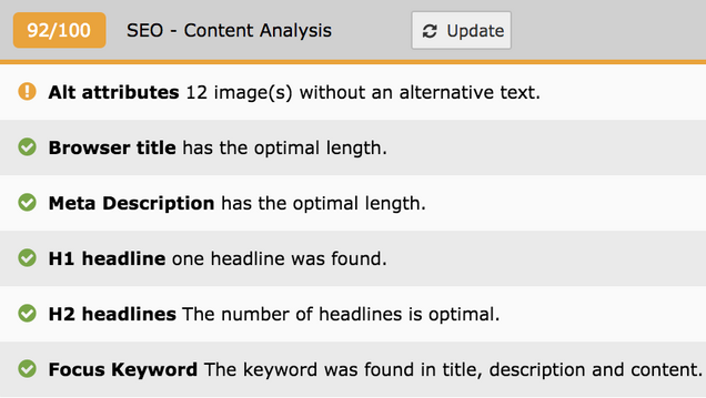 Another example is Yoast SEO for TYPO3. In this video Richard Haeser shows how easy it is to optimize your content with Yoast SEO for TYPO3 and how you can track your improvements against a checklist here too.