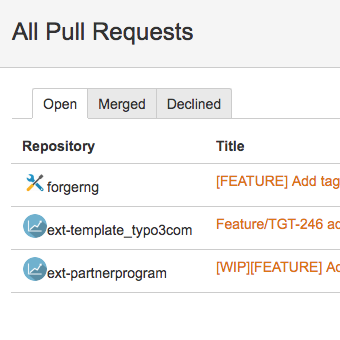 When developing software at TYPO3 GmbH we always consider releasing it as open source - that's why this blog is now available in the TYPO3 Extension Repository and the repository for it is public. But Open Source means more to us than just publicizing the code - it also contains the possibility to take part in the development, give feedback and ask for features. As we described above we are using a toolset matching our internal development workflow - and as we release our software only when we consider it usable - all of our software gets developed on that stack. Fortunately its very easy to open these tools for others. Let's take the blog as an example again - you can just report issues and give feedback via service desk and request an account in our system for taking part in the development. Once you have that account you are member of a group called "blog contributors" which automatically gives you access to the corresponding Jira project, Bamboo builds and of course to the repository as all users and groups are managed by Jira and just used in the other tools.