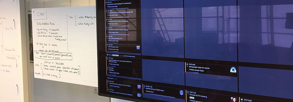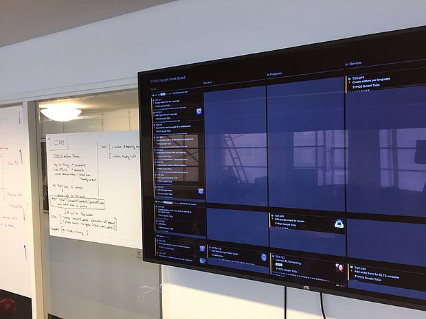 First of all there are some basic conditions to our work. We have a core of six people working directly for the TYPO3 GmbH at the moment, one of them part-time. Our main office is in Dusseldorf, where half of these people have their work space. The other half works remotely and is only present at the office once a month for a few days. Additionally we have people not directly working for the GmbH involved in our projects. For example these may be developers working on the reimbursement tool or as our server admins, who are paid by us but aren't employed at the GmbH. Some of the projects we are working on are open source software projects - this blog extension is a good example - so other contributors are welcome.