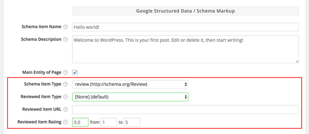 With the Schema Plugin, you can maintain schema.org attributes within the blog post’s meta area.