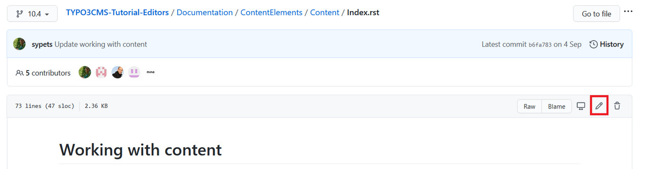 The TYPO3 docs team is always looking for people who want to contribute. It is easy and the most important thing is - you can’t break anything! Especially while you are a beginner and are learning new things, you are in the perfect position to contribute, as you have the same understanding and insights as other beginners and can create resources that match this level. While you figure out for yourself how templates and content elements work, you might find that there is something missing in the TYPO3 docs.