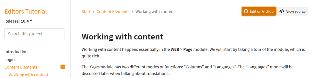 - TYPO3 Tutorial for Editors - the TYPO3 docs page provides an Editor guide that explains how to add or change content on an existing TYPO3 website