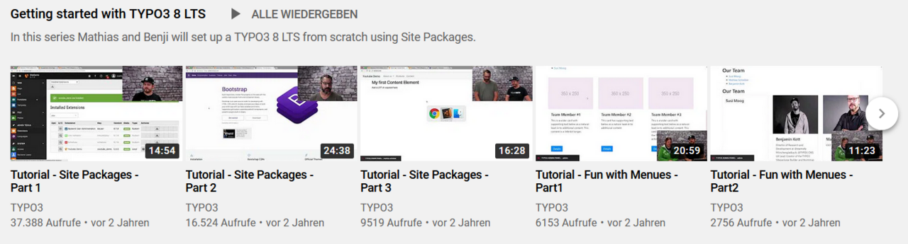 For everyone who likes video content, you can find TYPO3 tutorials on the YouTube channels from Jochen Weiland and Wolfgang Wagner in German. A tip from Daniel is to also visit the YouTube channel from TYPO3, which has lots of videos from previous TYPO3 camps and other tutorials. There are resources in English and German available.