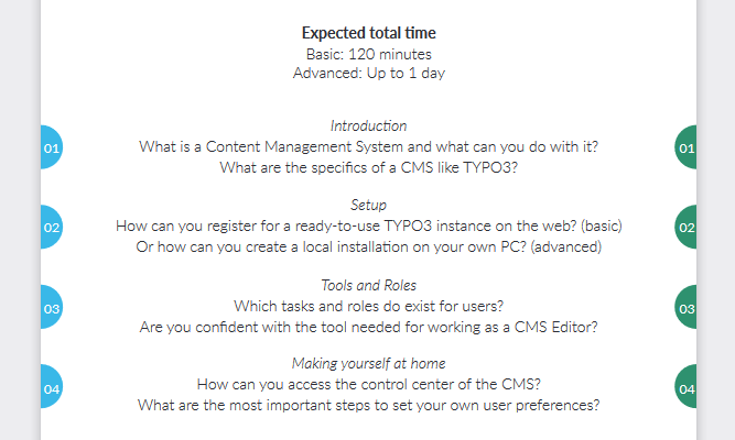 This blog post is about resources for TYPO3 beginners - in TYPO3 terminology you want to learn the “TYPO3 Editor” skills. If you are looking for German resources, you want to look for “Redakteur”. When you are already more familiar with the content management system, you can look out for “integrator” related skills. Thank you to Olivier Dobberkau (TYPO3 President), Jochen Weiland (jweiland.net) and Daniel Siepmann (TYPO3 Documentation Team) for giving inputs for the blog post!