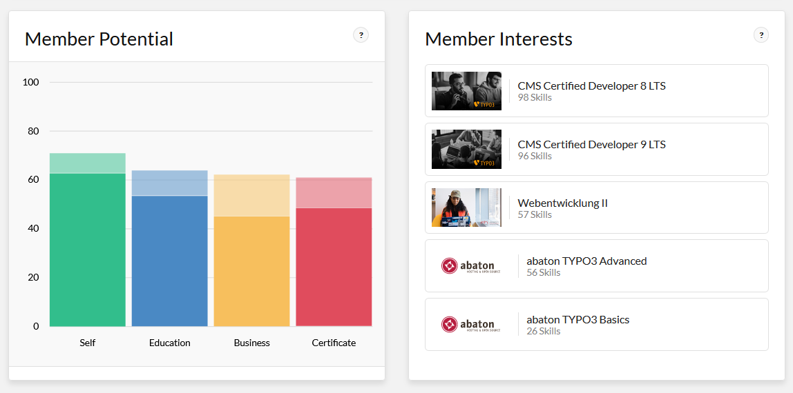 Here, the administrators get an overview about what SkillSets are mostly used by their members/employees/students.