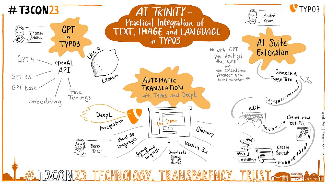 T3CON23 demonstrated that TYPO3 is where innovative AI meets exceptional content management, featuring three presentations on the potential of these new integrations::
