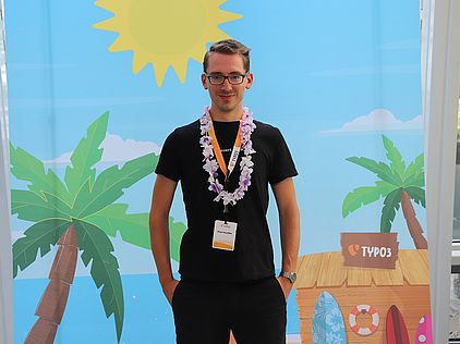 On Thursday the day started with breakfast at the hotel, which was decorated in the TYPO3 surf theme from the entrance, to the event branding, and the Surf Simulator available for playing. Breakfast was followed by a keynote from Benni Mack, TYPO3 Project Lead and b13 CTO, where he set the tone for the days to come with an interesting deep-dive into AI and how it can be a tool to support continued development of TYPO3 and open source technologies.