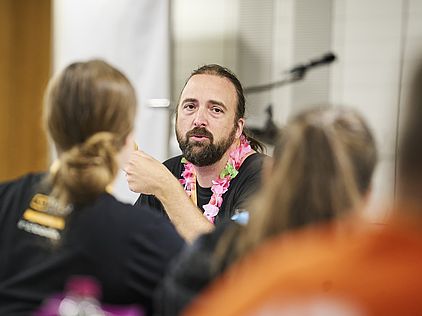 On Thursday the day started with breakfast at the hotel, which was decorated in the TYPO3 surf theme from the entrance, to the event branding, and the Surf Simulator available for playing. Breakfast was followed by a keynote from Benni Mack, TYPO3 Project Lead and b13 CTO, where he set the tone for the days to come with an interesting deep-dive into AI and how it can be a tool to support continued development of TYPO3 and open source technologies.