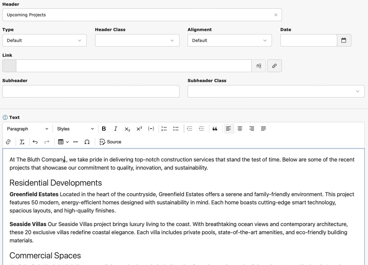 Dann füge ich meinen Inhalt in den Rich Text Editor (RTE) ein.