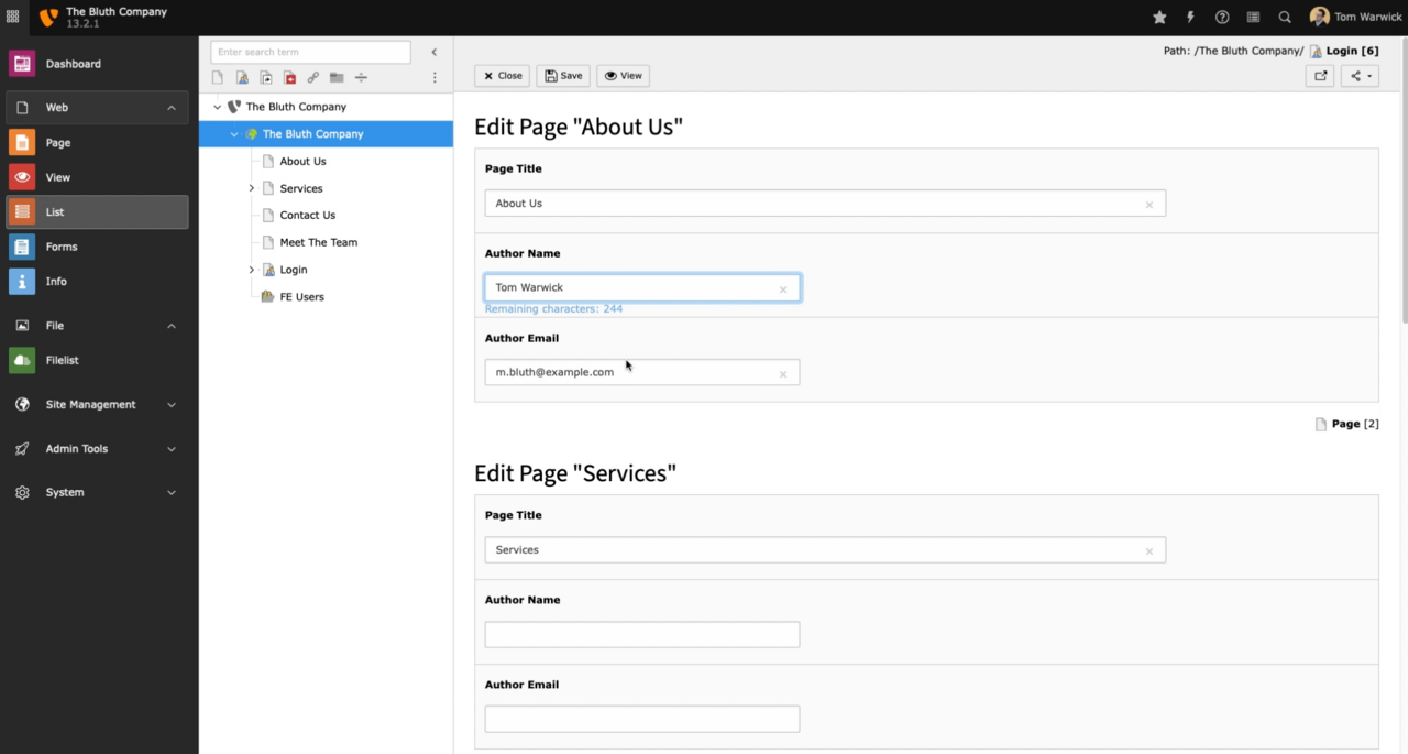 In this example we want to view the author and author email address for each page in the Page Tree. Once we have this information, we then want to update each page with a new author and email address.