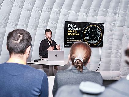 The lightning talks were carefully selected to match the program segments on the main stage. For instance, Neil Peretz’s presentation on Balancing Digital Freedom, Privacy, and Consumer Protection was followed by a lightning talk on Implementing Consent Management by dkd. The podium discussion on Government and Digital Sovereignty was complemented by a lightning talk on Measuring Digital Sovereignty in TYPO3 Applications by CPS that introduced the “especially exciting” Digi.Souv.Score for evaluating your own digital sovereignty.