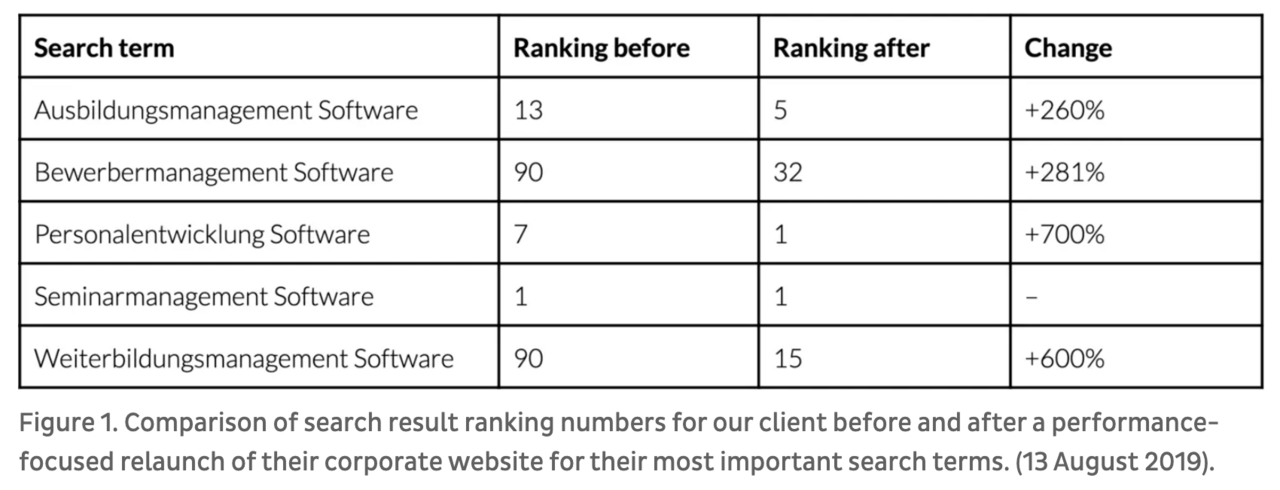 As b13’s David Steeb puts it in his article on making TYPO3 faster: if your site is slow, “You just lost a visitor because you didn’t answer my knock on your door.” Making your site fast is like getting out of your armchair and at the door before your customer moves on. They discovered that, true to their word, Google greatly improved the position of content after they improved website performance for these pages.