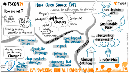 0:05: Welcome back to another episode of Inside TYPO3. 0:09: And this one is a special episode because we are in Düsseldorf for T3CON. 0:15: And in this episode, Tom and I are going to walk you through the conference, whether you were here with us in person or to catch up on everything that happened. 0:25: We'll break it down day by day. 0:27: We have some interviews peppered in there so you can get a feel for the speakers and the content and yeah, take you along the ride with us. 0:36: So Tom, welcome to Düsseldorf from Wales. 0:39: Hello there, nice to be back. 0:41: We've got some really, really good interviews to share with everyone today. 0:45: We'll start off with a recap from day one, followed by our first interviewee. 0:50: Then we'll follow that up with a recap of day two, another interview and then a recap for day three. 0:55: And we'll also talk about the awards gala which took place on the very last day of the event as well. 1:01: So yeah, without further ado, let's get into our day one. 1:04: Recap. 1:08: Day one was our public sector day which featured a range of talks and discussions aimed purely at those who work within government and higher education. 1:15: After the opening ceremony, which was delivered by Frank Schmidt. 1:19: The first talk of the day was given by our very own Daniel Fau, Luisa Faßbender and Frank Nägler in their talk TYPO3 for the public sector and education. 1:27: The dynamic trio provided an update on how TYPO3 is being used in this market. 1:32: It's well worth pointing out TYPO3 is being used on more than 35% of German government websites. 1:38: And during the talk, we learned about the different ways government departments leverage TYPO3. 1:43: I think for most people including me, the big highlight for day one was the government site builder or GSB based on TYPO3. 1:50: The GSB is a service that is available to all government departments and integral to the Federal Information Technology Centers. 1:57: Long term goal to standardize all federal websites so that they use a single CMS solution. 2:02: Silke Spielkamp, the project lead for GSB 11 and Nikolai Jaklitsch who is head of the government Basic Services took part in a panel discussion where they talked about the GSB project in detail and also took questions from attendees. 2:15: After the panel discussion, I sat down with Nikolai to find out more about the project. 2:19: And as a relative outsider, I had plenty of questions for him. 2:24: So this afternoon, I'm joined by Nikolai Agli, who is the head of Directorate at the ITZ Bund, otherwise known as the Federal Information Technology Center here in Germany, Nikolai. 2:33: Thank you very much for joining me today. 2:35: I'm really grateful for your time and I supposed to get right to it. 2:39: It's part of my role. 2:40: I spent quite a bit of time this year talking about the government site builder and the work you've been doing on behalf of the ITZ Bund. 2:47: And it certainly sparked quite a lot of interest outside of Germany in terms of what you're doing. 2:52: So, from the perspective of an outsider or for our listeners who aren't aware, could you give us an overview of the government site builder project, please? 3:01: Of course, I can do. 3:02: Thank you very much for having the opportunity to be here. 3:05: It's really a pleasure for me, for us. 3:08: The government site build. 3:09: The project has, let's say two or three main goals. 3:14: The first goal we have a standardization. 3:17: It's important to know in Germany, we have a federal state organization and within the federal governmental body, we have, let me guess 18 ministries and each ministry is trying to do its own thing regarding I T and all that stuff. 3:31: And a couple of years ago, the Ministry of the Interior started an initiative to standardize that stuff, to reduce costs and to align the, the requirements and to align the development and continuous integration processes. 3:48: That's the main thing we do. 3:49: Our main struggle is to convince people from this part of path of standardization. 3:55: And I guess the the main reason for this change was driven by cost or reducing costs. 4:00: Yeah, it was on one hand driven by reducing cost. 4:04: On the other hand, driven by reducing complexity. 4:08: Because prior of using TYPO3, we had about 100 and 80 websites. 4:15: We had to manage A T the I T Z boon which have all been with, which have all been individually developed. 4:21: And when you have to do a main when you have to set up a major release, you're struggling quite a lot regarding the technical processes. 4:29: So on one hand, it was the reducing of cost. 4:32: On the other hand, was facilitating C inc D pipelines, which is pretty important for us. 4:37: We want to automate as much as we can and I guess there was a tender process where you looked at multiple solutions briefly, could you tell us some of the reasons why you opted for TYPO3 in the end? 4:52: Yeah, we opted for, we've checked the market in 2020 looked left and right regarding other content management systems. 5:01: We had two main reasons why we opted for TYPO3. 5:05: The first reason was that a lot of organizations within the federal government were still using TYPO3 in different versions, but they were using TYPO3. 5:15: And the other thing was we found quite a lot of extensions which we could use. 5:21: We, so we didn't have the necessary to do our own developments, but we could use and we could use these extensions, these were the two main points. 5:31: So for any similar organization in another country who's looking to embark on a similar process of standardizing their digital solutions, what would you say would be the largest challenges they're likely to face in what I would imagine be a very difficult task. 5:46: From my point of view, a very difficult task comes from the independency we have especially in Germany regarding the different ministries as they have their own IT departments
