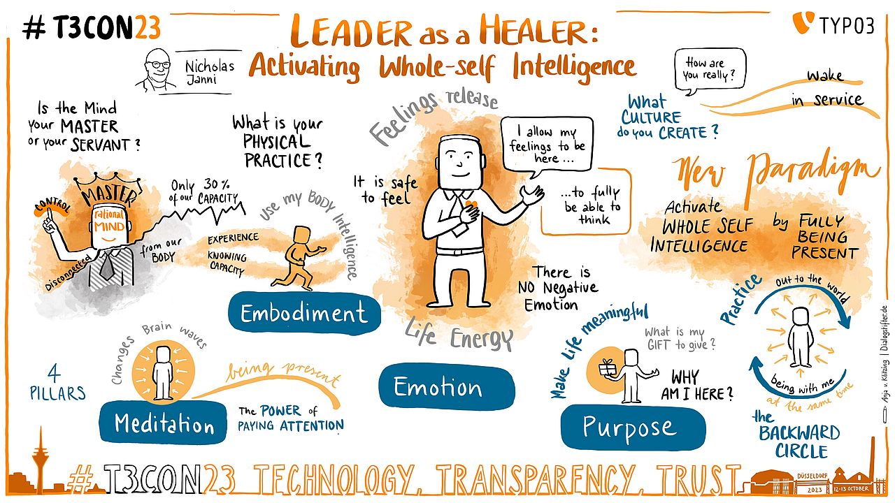 T3CON23 opened with a keynote by award-winning business book author and leadership consultant Nicholas Janni under the title Leader as Healer. The talk focused on how leaders can develop their inner lives and activate what he calls whole-self intelligence to create more humane, connected, and purpose-driven organizations.
